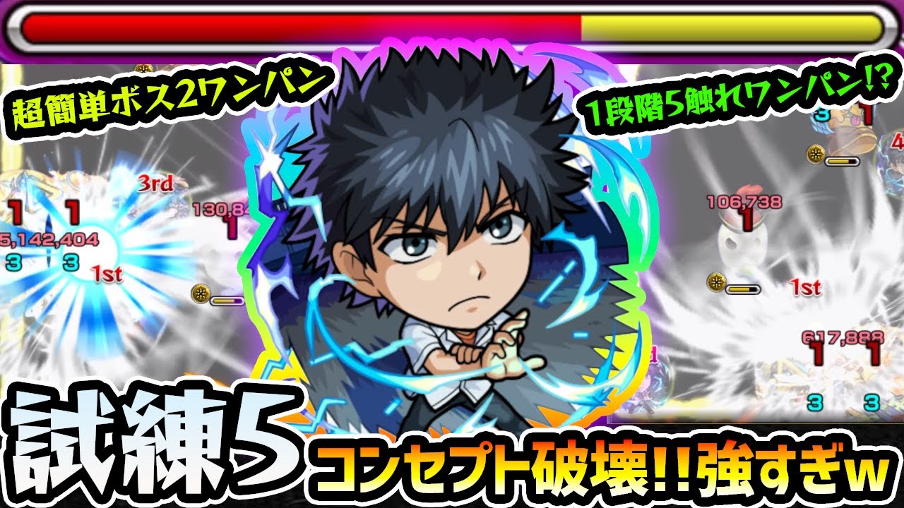 【上条当麻】※試練5、コンセプト破壊SSが強すぎる!!1段階×5触れで楽々ボス2ワンパンも可能!苦手な方は非常に助かる性能で耐久面や友情も高性能。とある科学の超電磁砲コラボ使ってみた【けーどら】