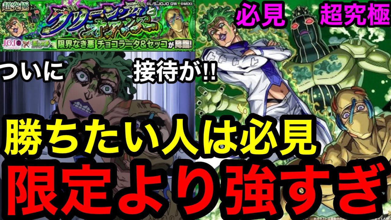【モンストジョジョコラボ】超究極チョコラータの攻略動画です。あの恒常キャラが限定より強すぎて超簡単に攻略できるので興味がある方はぜひ観てください。