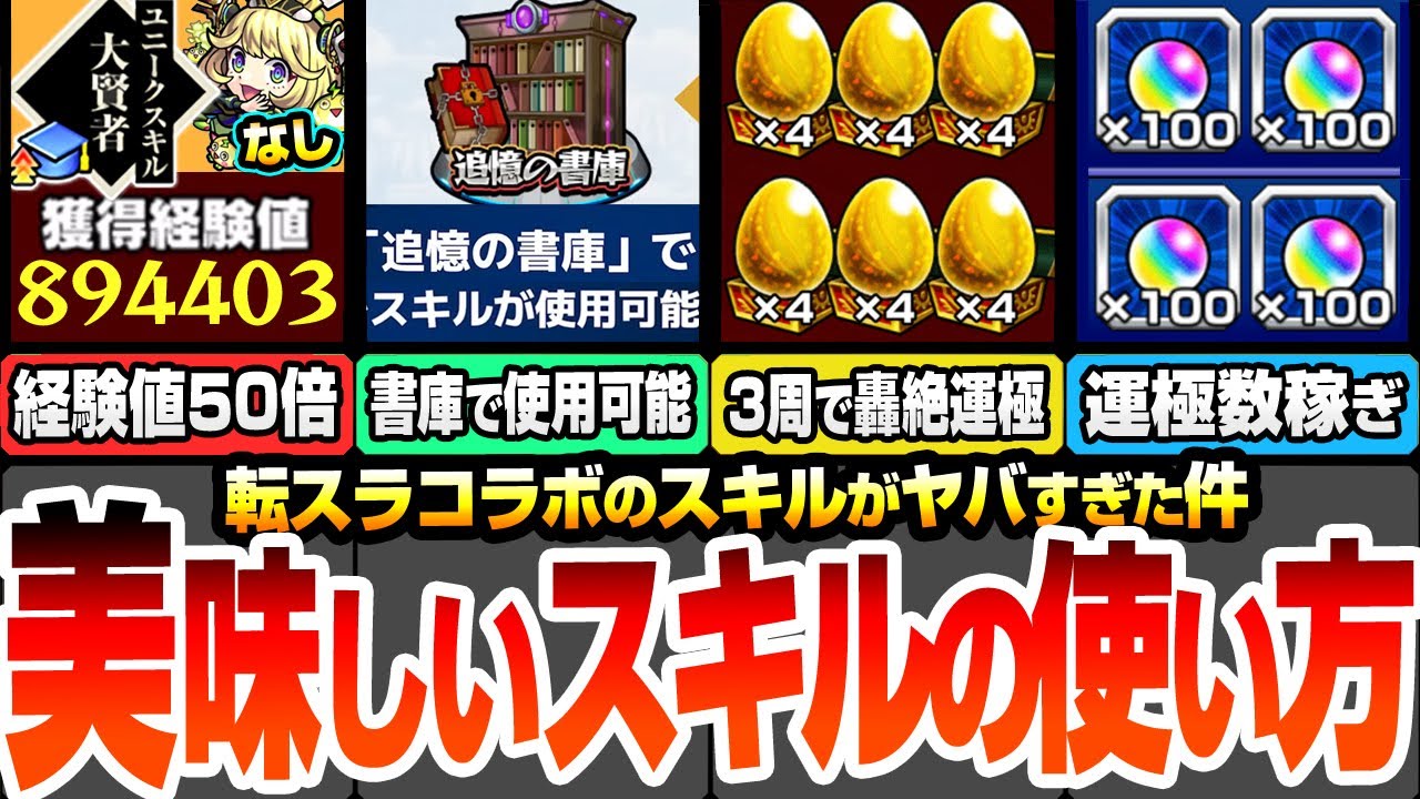 モンパのモンストニュースで『転生したらスライムだった件』コラボ第2弾が発表!転スラコラボ第1弾は獣神化改が解禁!新スキル大賢者で経験値50倍がヤバい!1周で経験値89万!創造者で約3周で轟絶や超絶が運極になる!運極達成数を稼いでオーブをゲットしよう!作るべき書庫絶級の運極オススメ!超効率でランク上げをする方法!大賢者と創造者を活用しよう!ガチャは引くべきか?