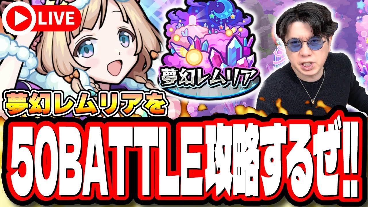 【🔴モンストLIVE】「夢幻レムリア」を初見攻略!! 50BATTLEクリアしてやるぜ!! 磯撫の高速周回も!! みんなで情報交換しましょう!!