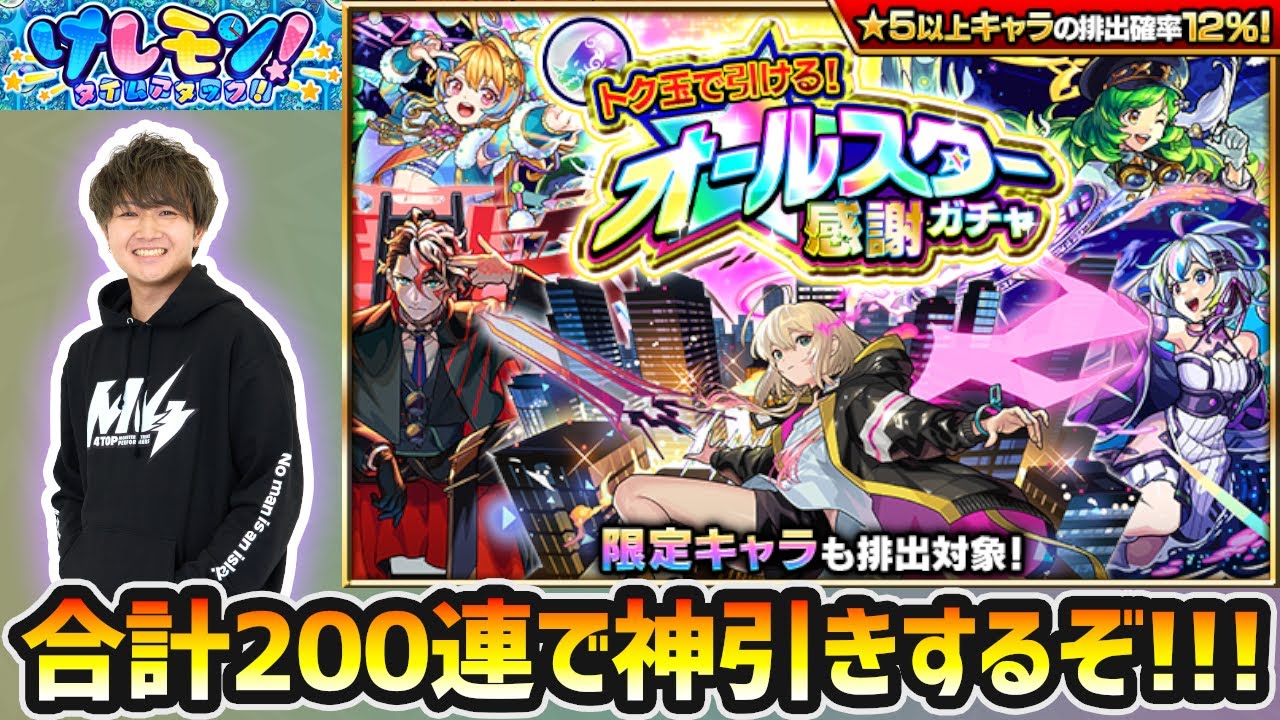 【🔴モンストライブ】神引きなるか!?けしモンで貯めた『トク玉50個×4垢』オールスター感謝ガチャ引くぞ!!!【けーどら】