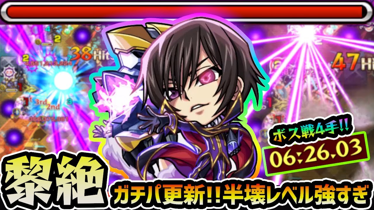 【ルルーシュ】※圧倒的ガチパ更新!ルルーシュ3体編成が想像以上にヤバい。まさかのボス戦4手、6分台でクリアも…!ついに黎絶ビリミスクを半壊まで追い込んだぞ!コードギアスコラボ使ってみた【けーどら】