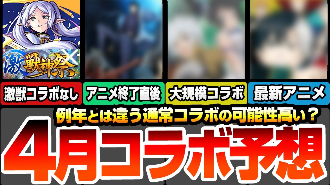 例年通りの激獣神祭はなし!?GW前の4月のコラボは何が来るのか?アニメ終了直後のあやしい作品や最新アニメ作品がくるか?