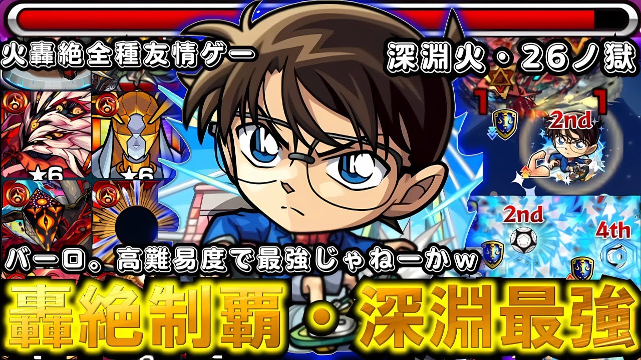 【江戸川コナン】火轟絶、超究極、禁忌26は友情で。深淵火は殴りでコナン獣神化・改が完全制覇【モンスト】