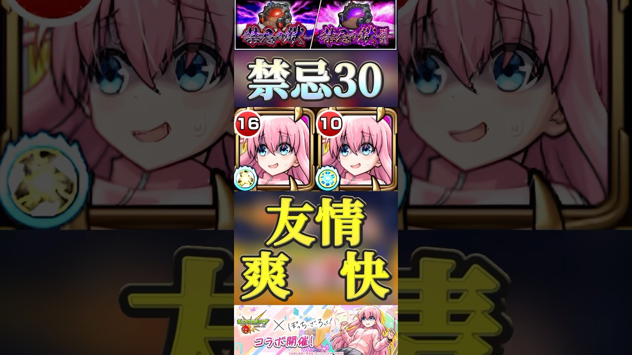 【モンスト】禁忌30 後藤ひとり採用ありじゃね!減速壁持ちで友情当てるだけで、敵が消し飛ぶ!?#モンスト #ぼっちざろっく #禁忌の獄 禁忌の獄 2025.05.26 オニャンポコンとこエクスでも問題なさそう。