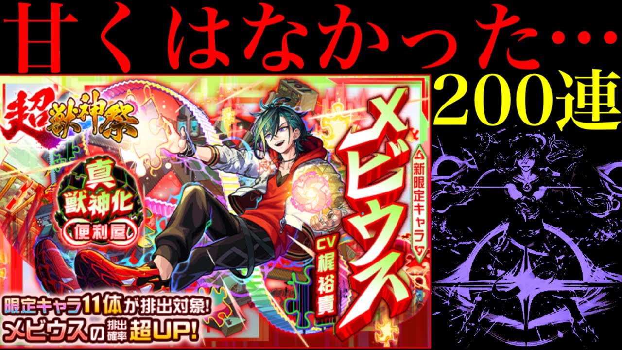 【モンスト】確率の壁を余裕で超える怪物たちが大暴れ…。新限定の『メビウス』狙いでガチャを200連引いてみたら平常運転だった…。【超獣神祭】