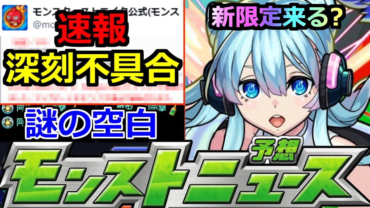 【モンスト】「速報!!」※これはやばい…アプデ後に深刻不具合発生中!!運営から発表が!!&モンソニ新限定がやってくる!?明日のモンストニュース予想【モンドリ3】