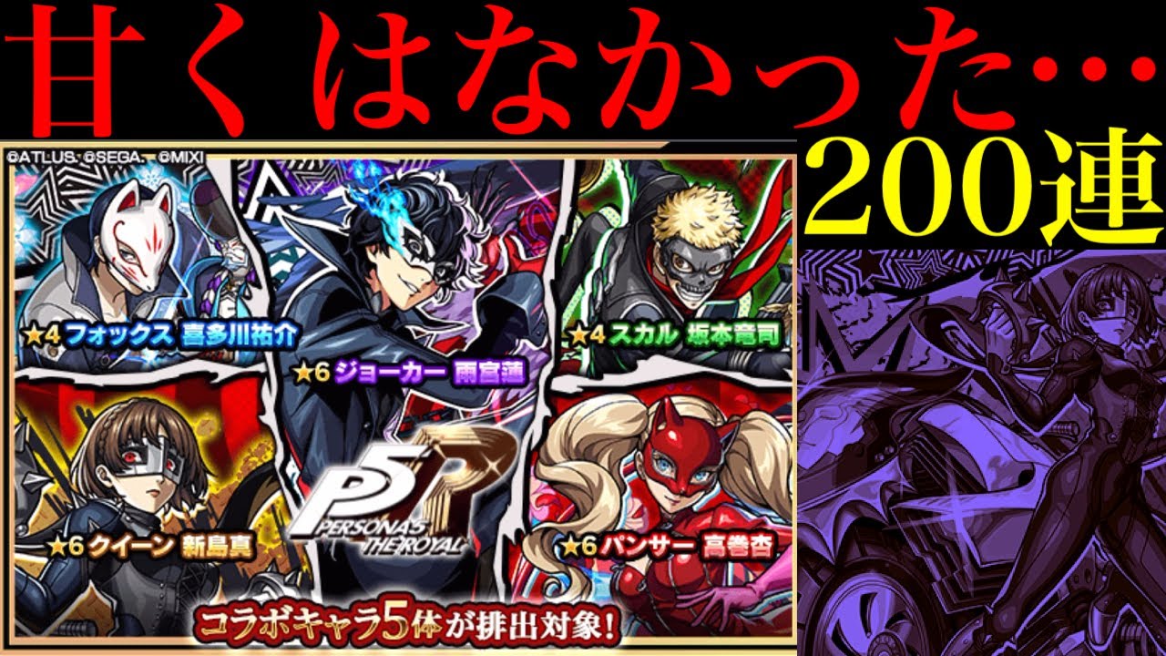 【モンスト】どうしてこうなるんだよおおお!!!!!!『ペルソナ5コラボガチャ』を200連引いてみたら甘くなかった…。