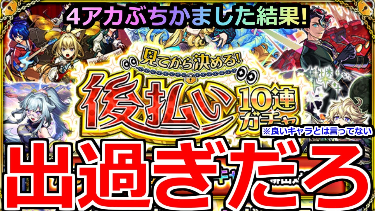 【モンスト】「見てから決める!後払い10連ガチャ」《出過ぎだろ!!》※限定も来たぞ!!4アカぶちかました結果オーブ50個は使ったのか!?【ガチャ】