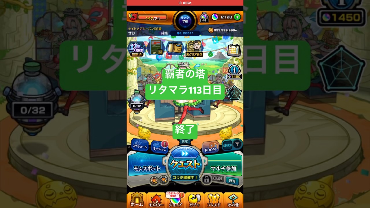 【モンスト】覇者の塔リタマラ113日目#モンスト#覇者の塔#リタマラ#shorts