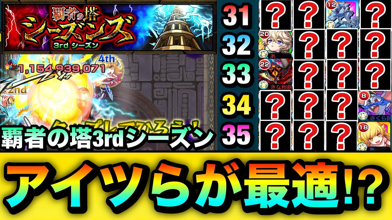 【モンスト】えっ!?まさかのアイツらが全員最適級!?覇者の塔3rdシーズン31〜35階クリアパ紹介