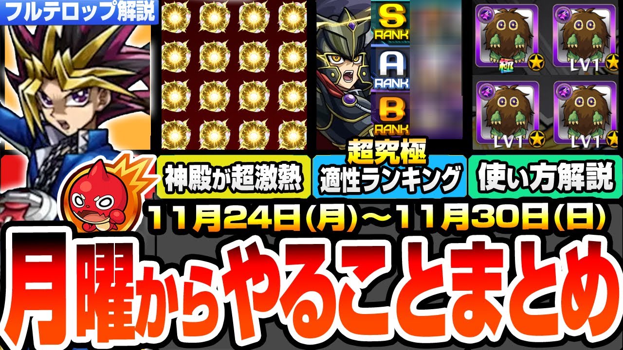 【モンスト】月曜からやることまとめ※見逃し超厳禁※絶対確保すべき星1クリボー解説!神殿でわくわく厳選が超激熱!超究極適正ランキング!周回すべき絶級とキャンペーン【遊戯王コラボ】へっぽこストライカー