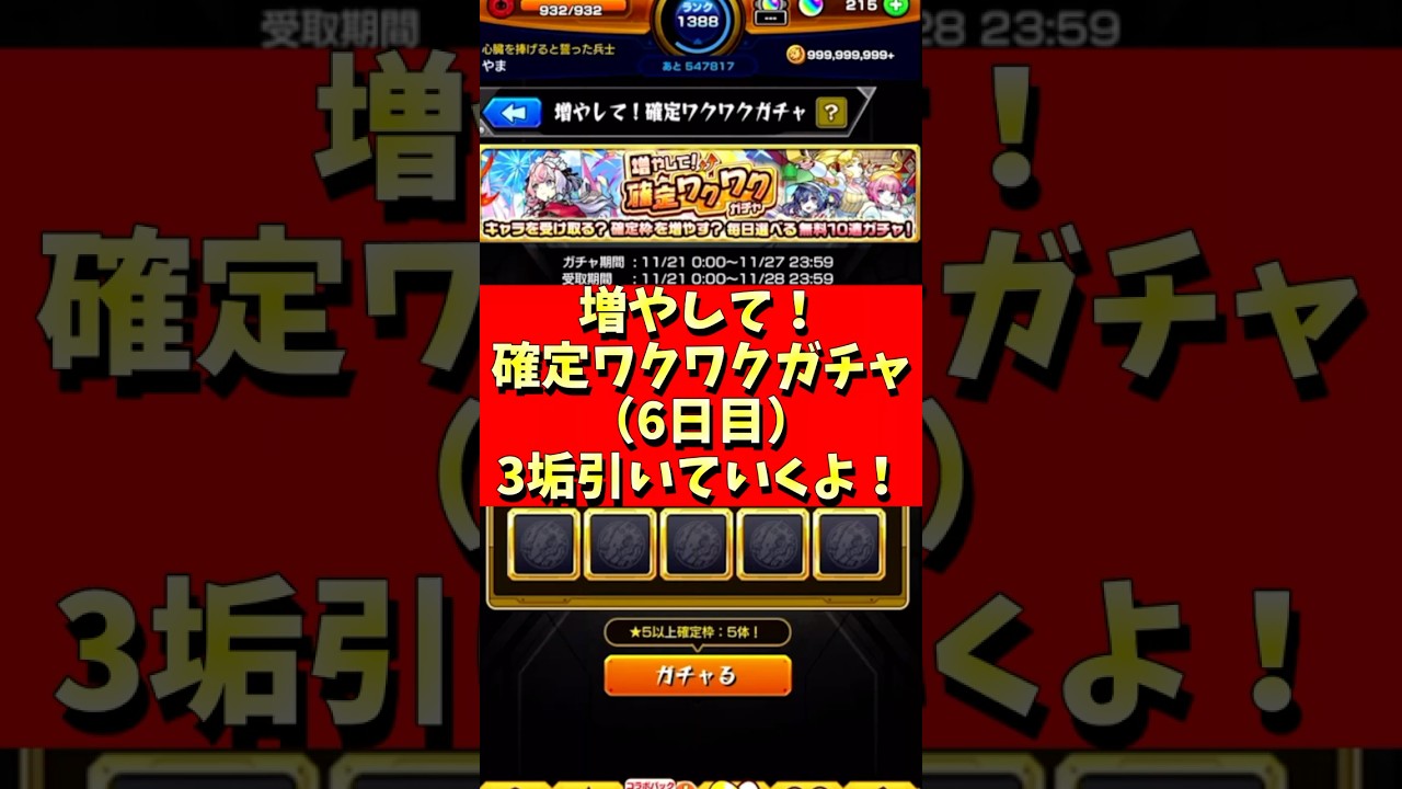 モンストの増やして!確定ワクワクガチャを3垢引いていきます!(6日目)
