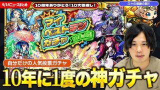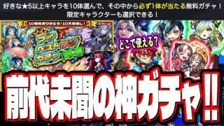 モンストガチャ 【激熱無料ガチャ!!】好きなキャラクターを10体選んで、その中から必ず1体が当たる無料ガチャが開催‼︎ 新イベント情報も!!【モンスト】