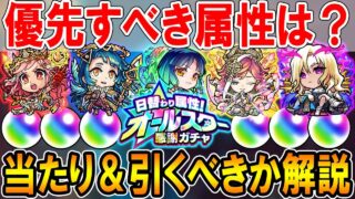 モンストガチャ 【引くべき?】属性オールスター感謝ガチャ当たりキャラ紹介&どの属性を優先して引くべきか解説【モンスト/しゅんぴぃ】
