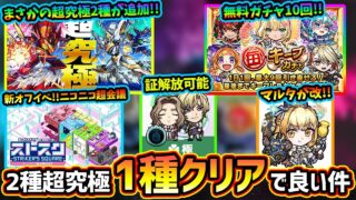 モンストニュース 【モンストニュース解説(3/20)】※無料ガチャ10連分『毎キープガチャ』開催!まさかの追加超究極”2種”追加だが、クリアは1種だけでほぼ全報酬もらえる件に注意!『マルタ』が獣神化改で新友情も追加!