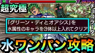 【モンストジョジョコラボ】超究極チョコラータ水属性3体ミッションの攻略動画です。お手軽編成で水属性ミッションを超簡単に勝てるので興味がある方はぜひ観てください。