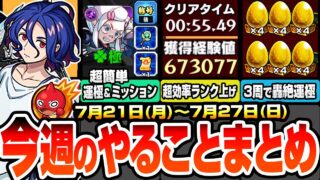 モンスト攻略 【モンスト】今週のやることまとめ※超効率でランク上げ放題※超究極を簡単に運極&ミッションを達成!書庫の轟絶が3周で運極!周回すべき降臨と適性まとめ【ジークアクスコラボ】【へっぽこストライカー】