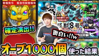 モンストガチャ 【怪獣8号コラボ】※このコラボ確定演出は面白いなw 全キャラスペック高いから2体ずつ欲しい!!!新キャラ『カフカ・キコル・保科』を狙って、オーブ1000個使った結果…【けーどら】