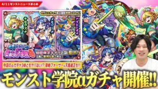 モンストニュース 【モンストニュース解説(4/11)】※今年のαガチャは相当強い!黎絶フォーサーの難易度が激落ち!?一部キャラSS倍率判明、新キャラ『メモリーα・アルビレオα・テセウスα』この中で当たりは?引くべき?