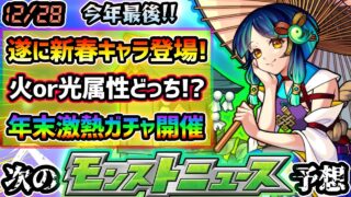 モンストガチャ 【今週の予想&小ネタ集】※今年最後のモンストニュース!新春キャラは火or光属性どっち?年末ガチャの要注意事項や引くべきかのおさらい!天魔の追加報酬と新ステージ追加は?モンストニュースフラッシュ来る?